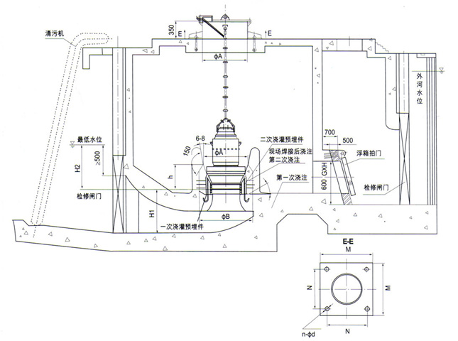 (2)、淹沒(méi)深度除需要滿足表中要求外,還必須比流道進(jìn)口上緣至少高500mm。